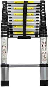 A Escada Telescópica 12 Degraus de alumínio, com altura máxima de 3,8 metros, é uma opção prática e versátil para quem precisa de uma escada leve, segura e compacta para transportar e armazenar facilmente.