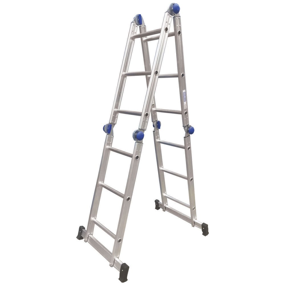 - 13 posições de uso para maior versatilidade (escada simples, escada dupla, apoio, andaime, entre outras)