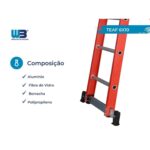 - Design: Possui 4 seções com 3 degraus cada uma, permitindo múltiplas configurações e uso em andaime.