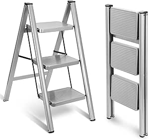 As escadas de 3 degraus dobráveis são compactas e fáceis de guardar.